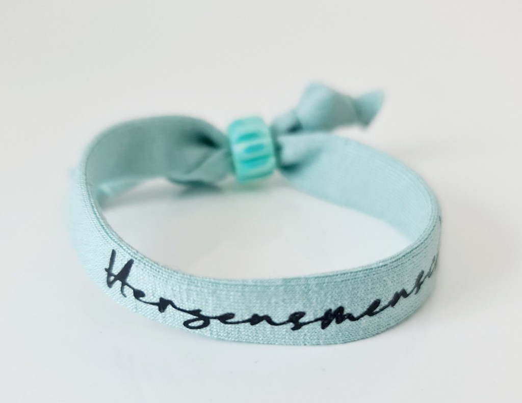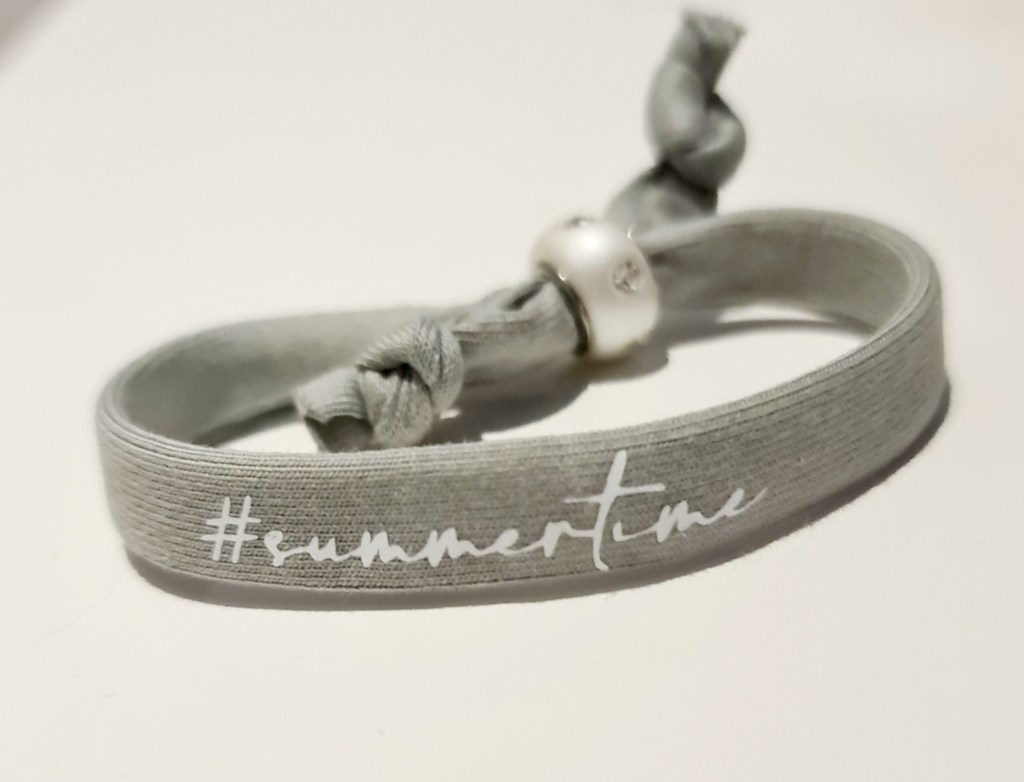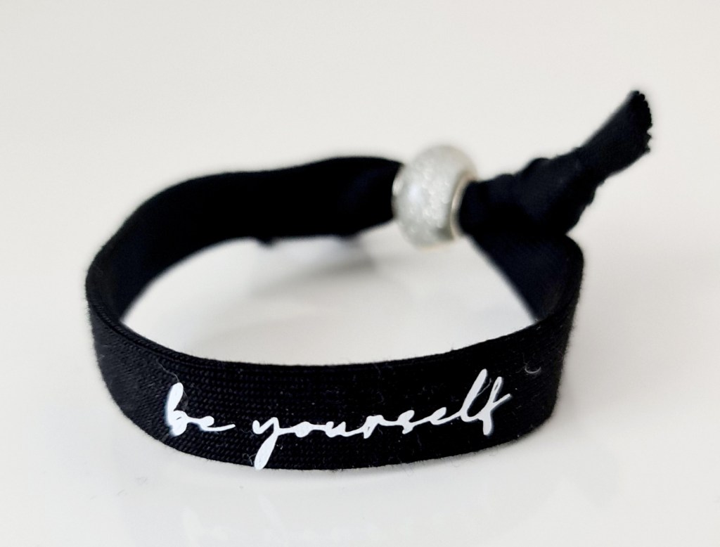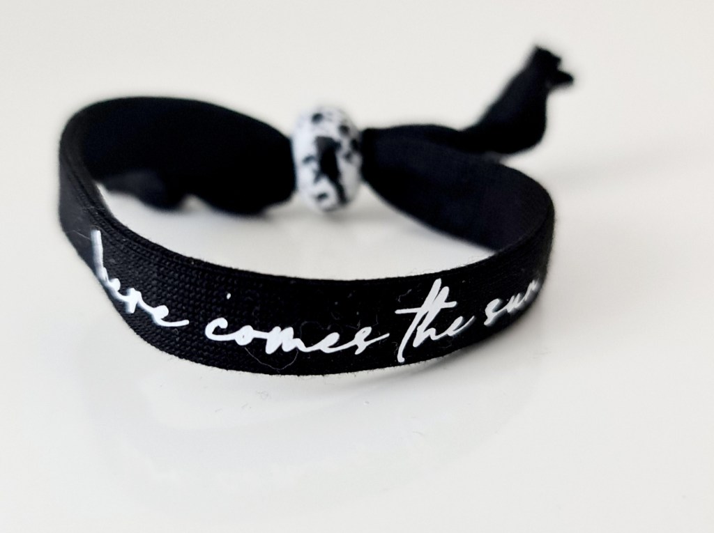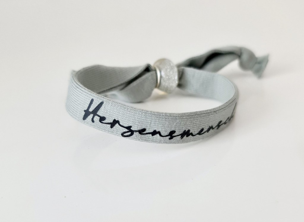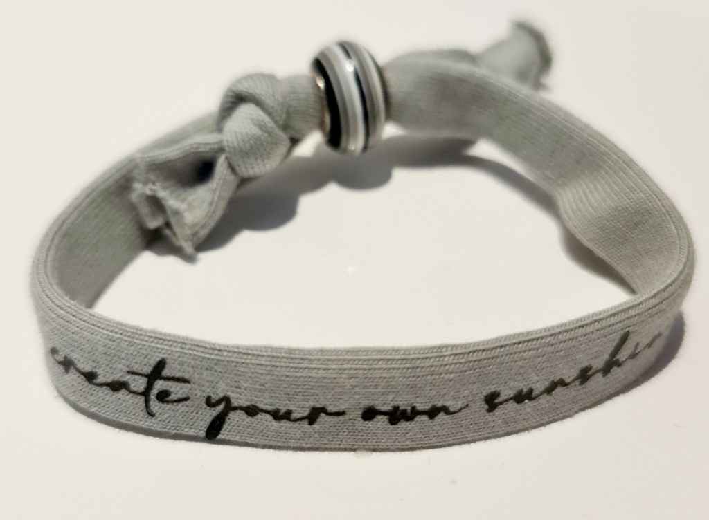 Die Armbänder werded miteme Schriftzug beplottet. Sie sind ide Grössi durd Perle verstellbar. Die Perle wird farblich am Bändeli apasst. d’Föteli sind lediglich Biispil, jedes isch es Unikat.