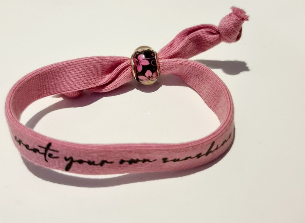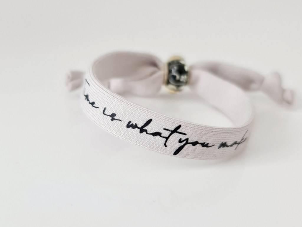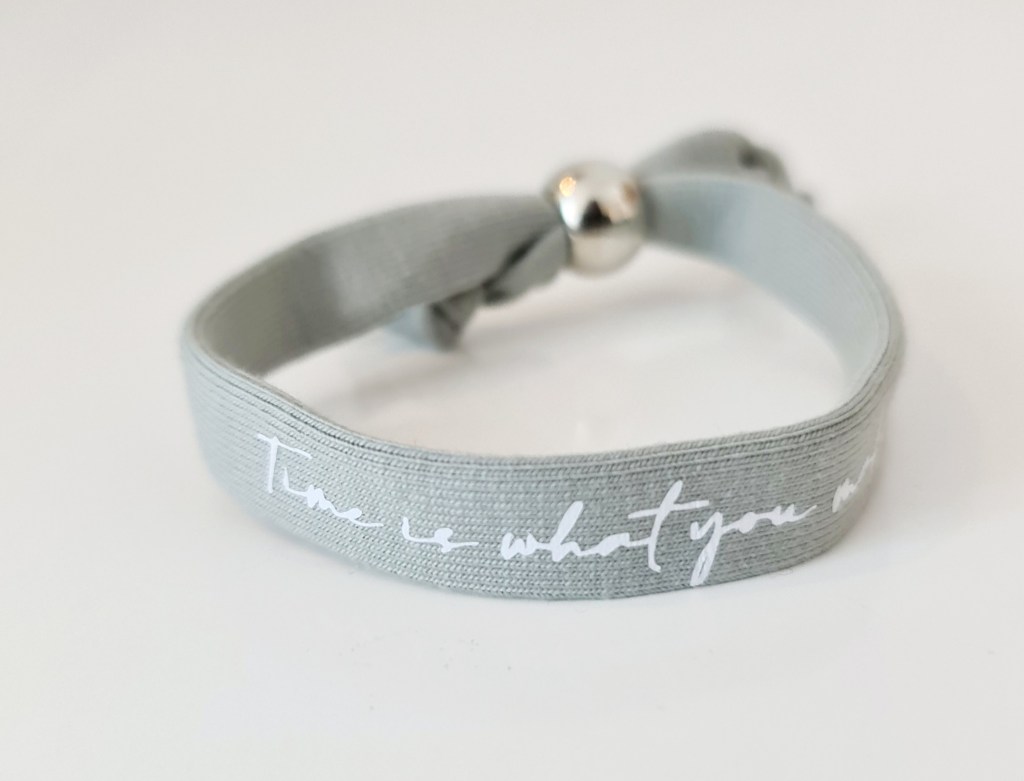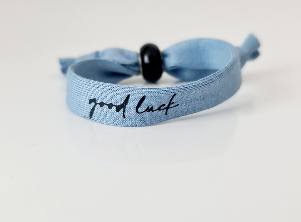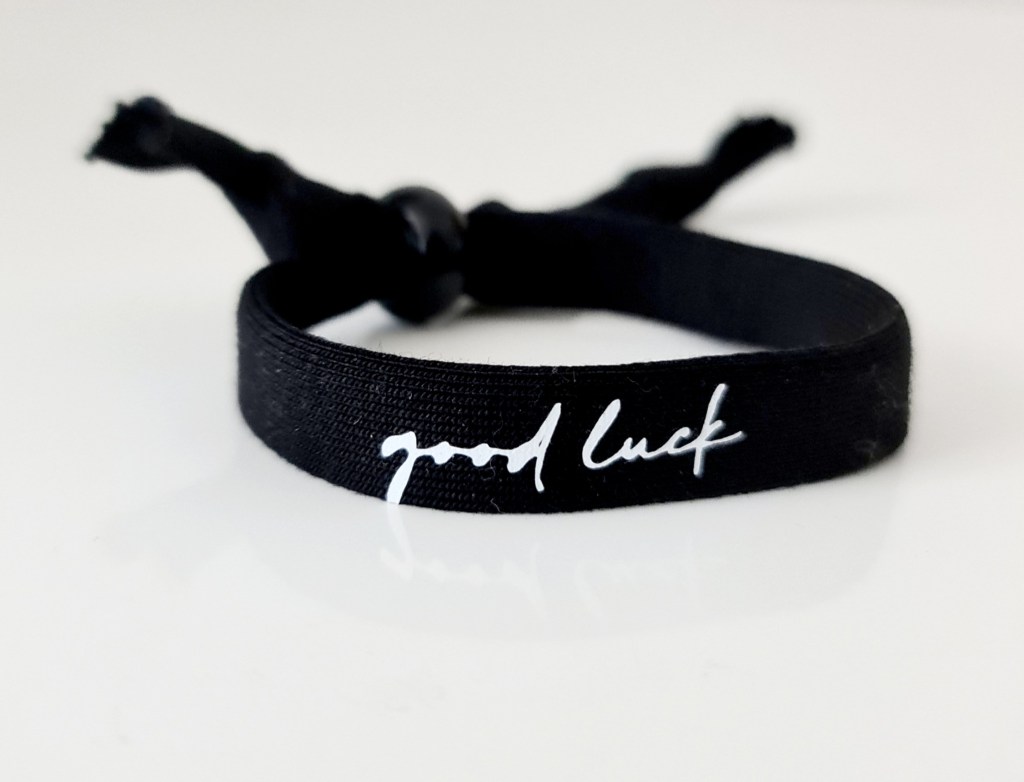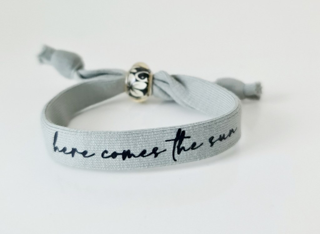 Die Armbänder werded miteme Schriftzug beplottet. Sie sind ide Grössi durd Perle verstellbar. Die Perle wird farblich am Bändeli apasst. d’Föteli sind lediglich Biispil, jedes isch es Unikat.