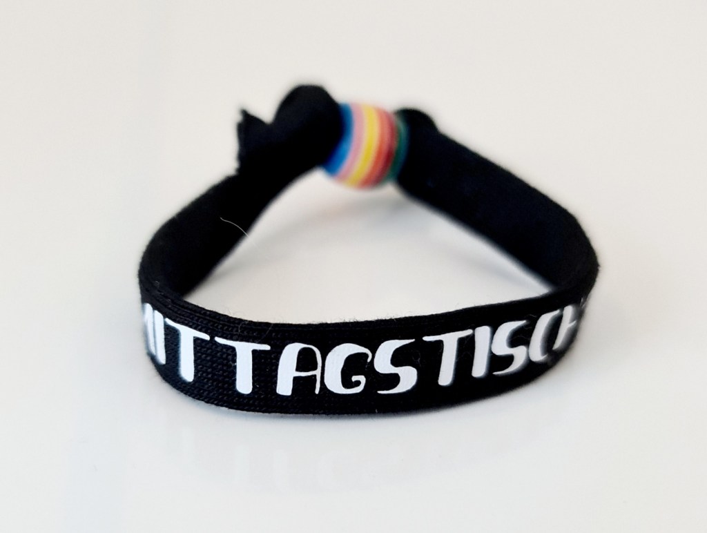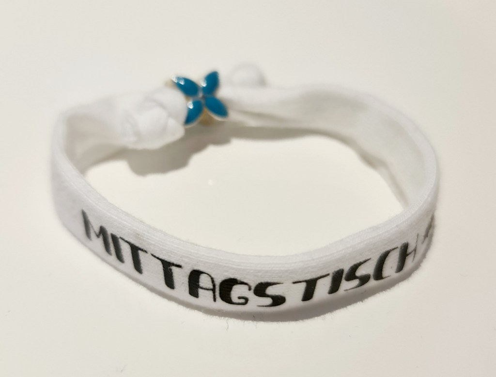 Dis Chind chunt in Chindsgi und weiss nöd wänns in Mittagstisch muen? Legem eifach s’Bändeli a. Schwarz oder wiiss mit farbiger Perle.