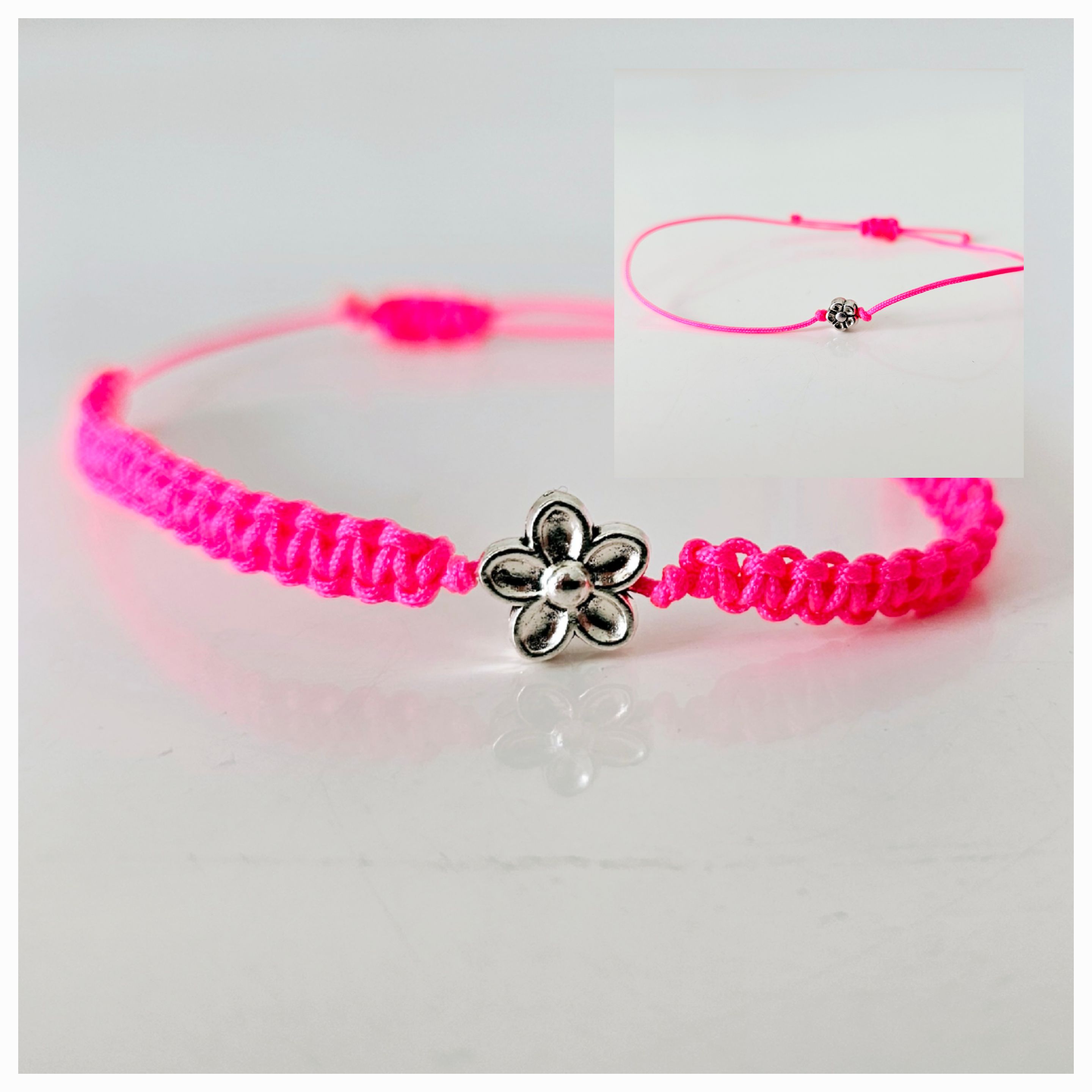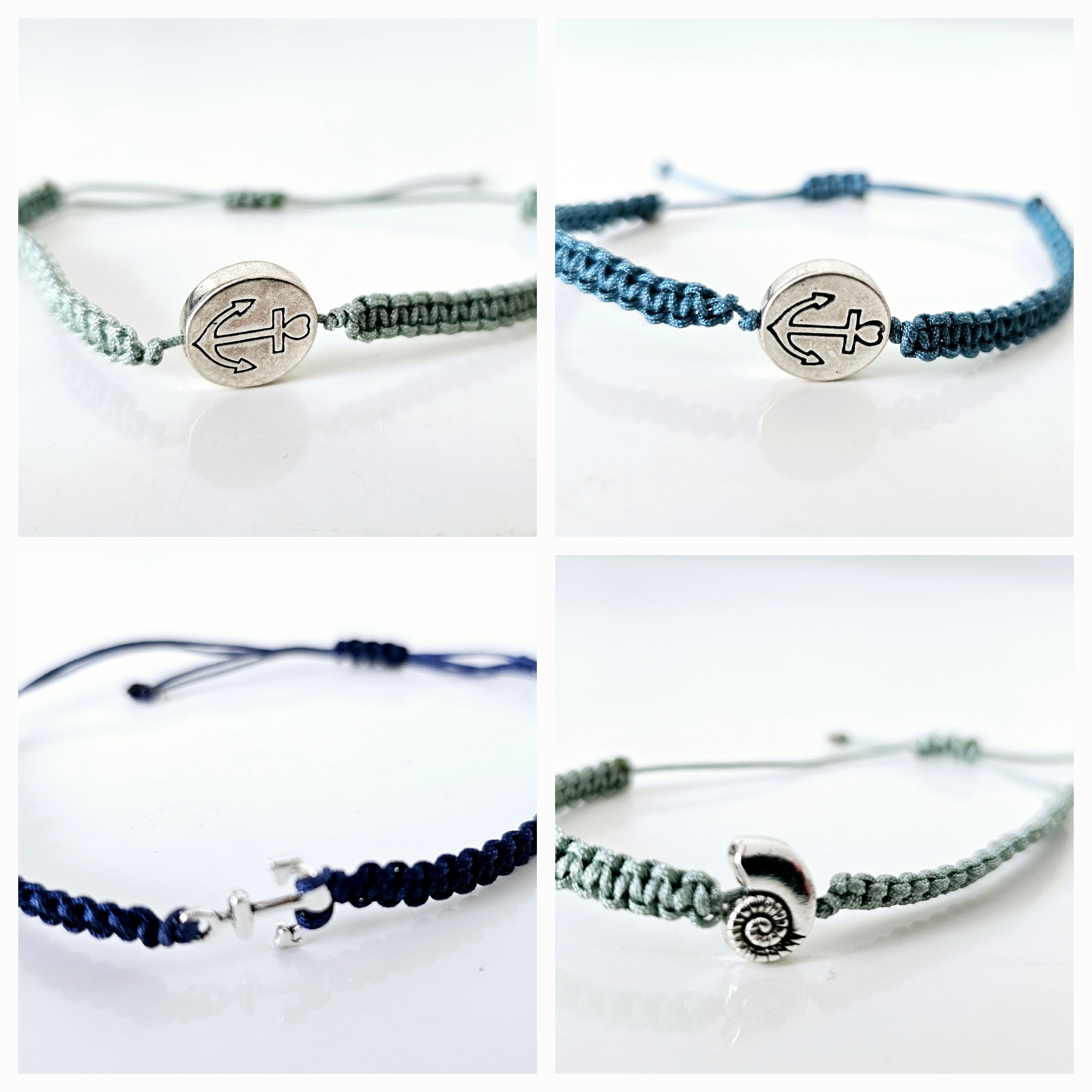 Alli Makramée Armbändeli sind ide Grössi verstellbar. Bim zwüsche Teili handlets sich um Metallteili.