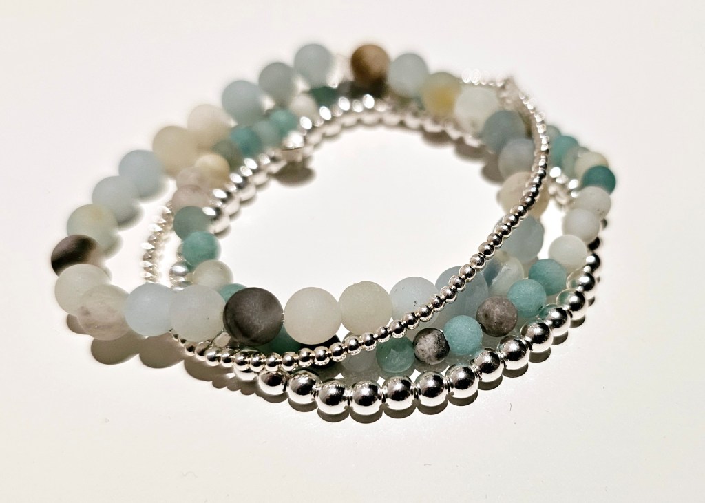 AMAZONIT ARMBAND SILBER 4er-Set (stei002)
