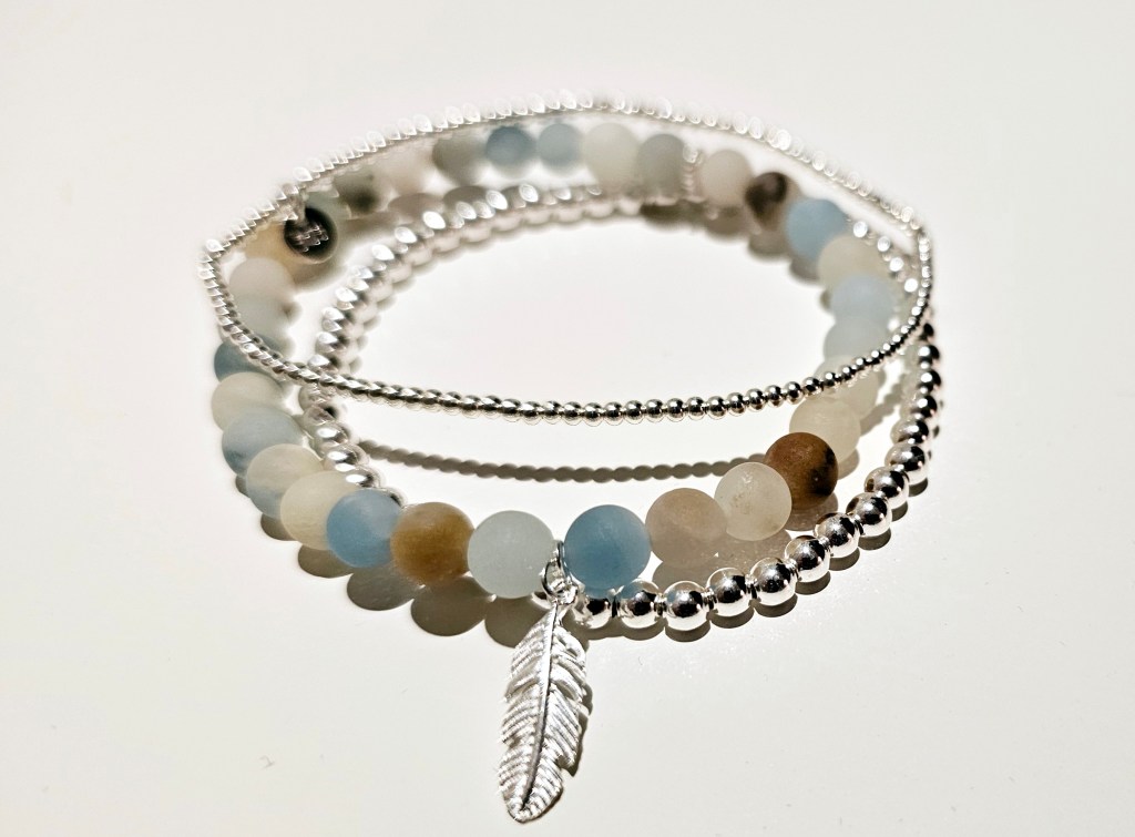 AMAZONIT ARMBAND FEDER 3er-Set (silber006)