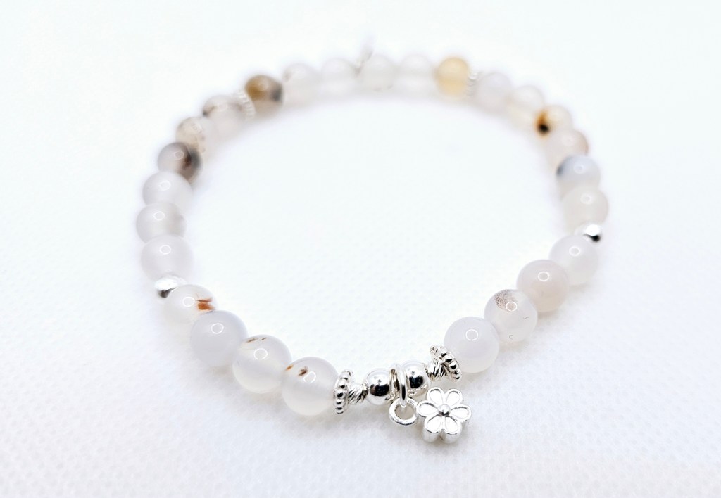 ARMBAND SARDONYX WEISS MIT BLUME (stei021)